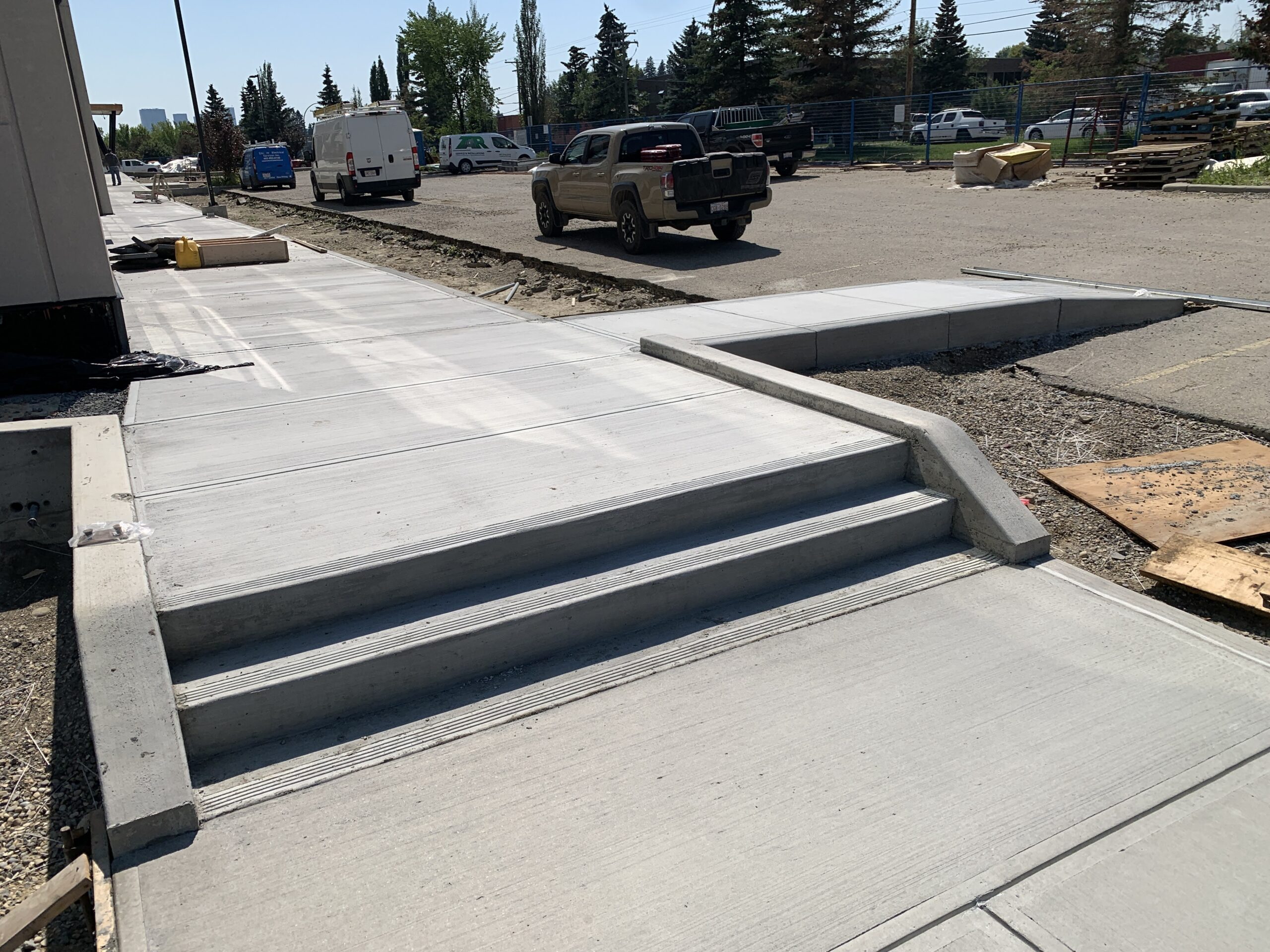 - Exterior concrete sidewalk installation is continuing.