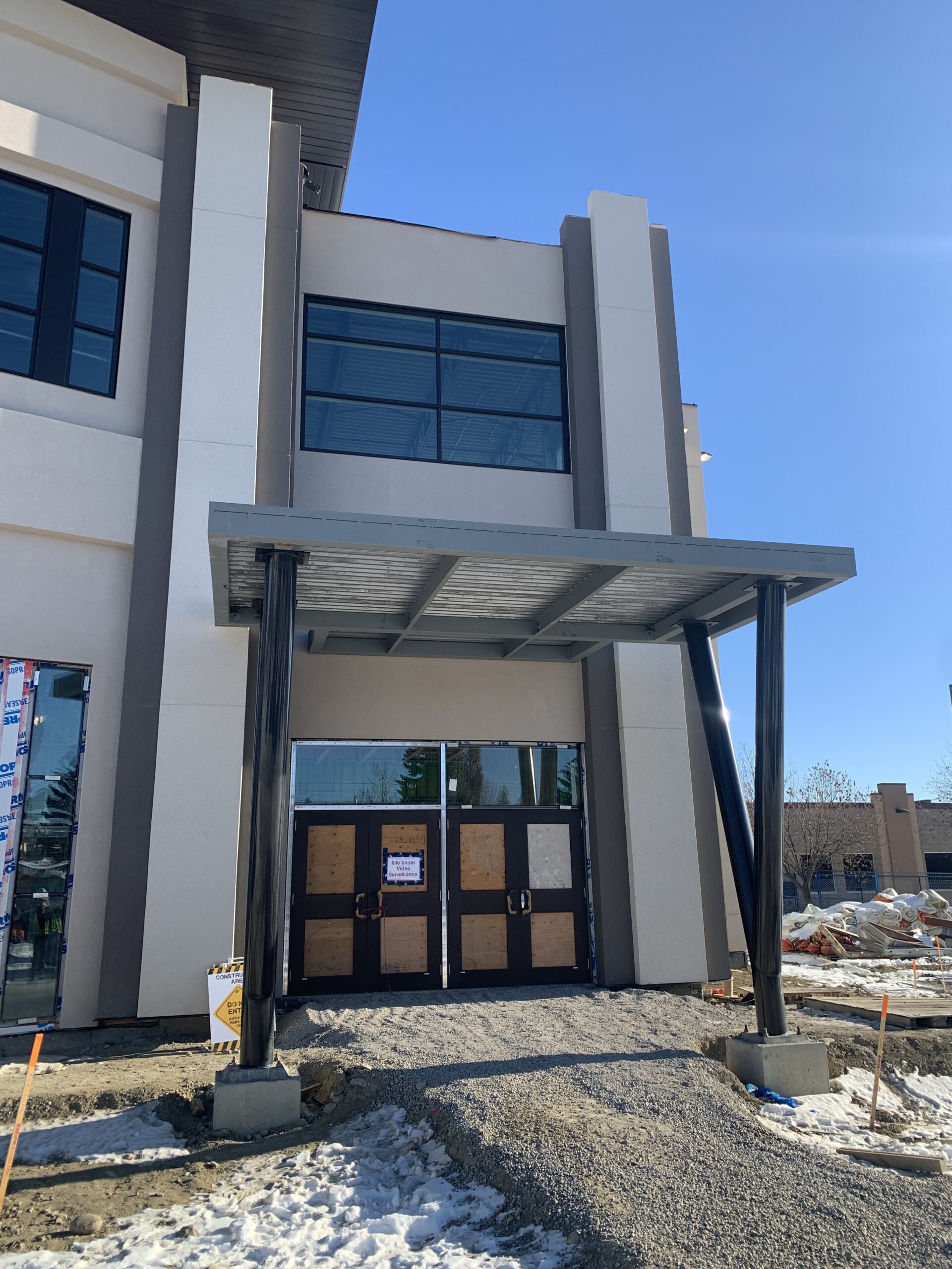 - The exterior doors have been installed at the new west entrance.
