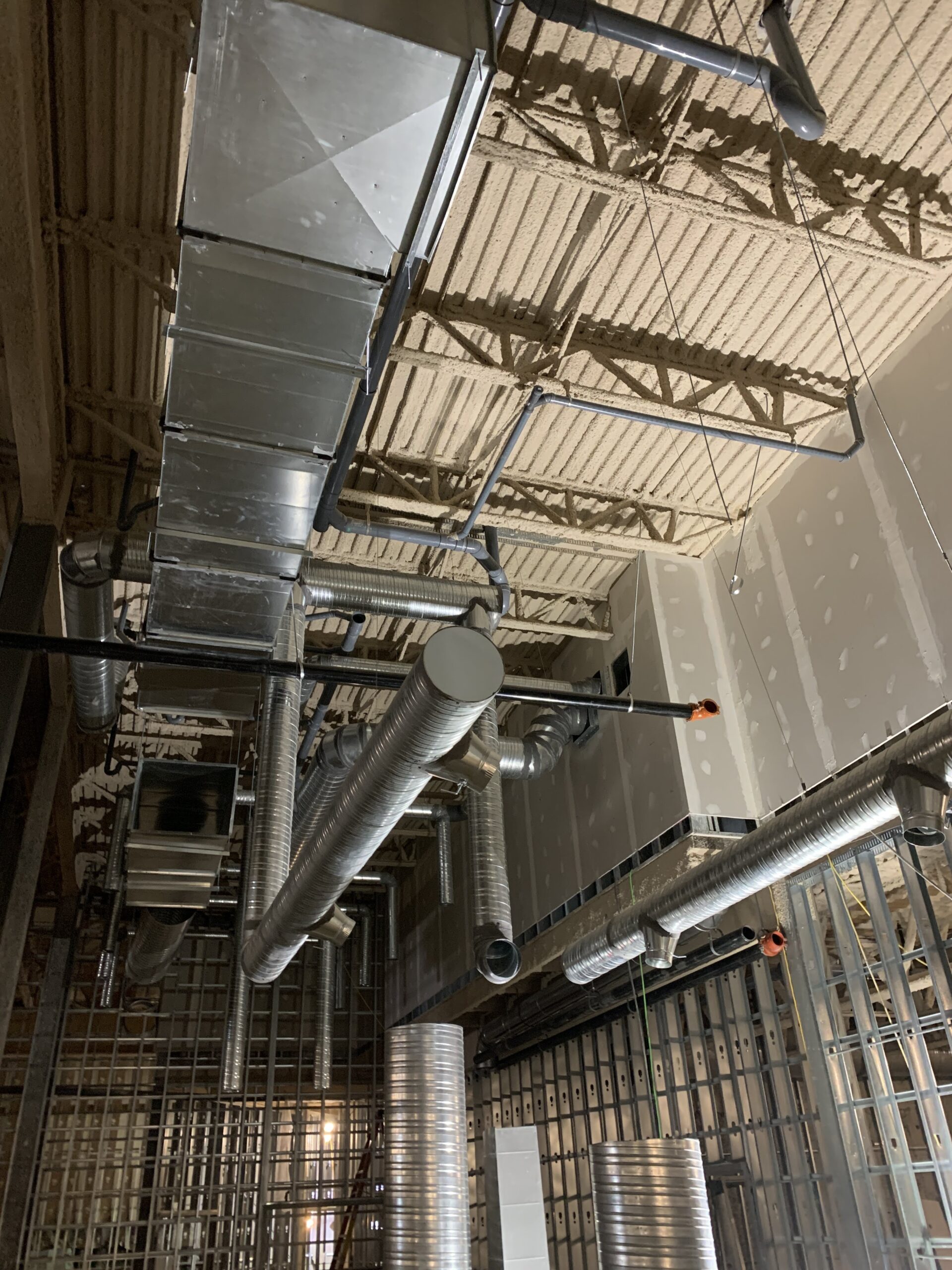 - At Central Campus, fireproofing has been sprayed on the ceiling of the lower level and second floor.